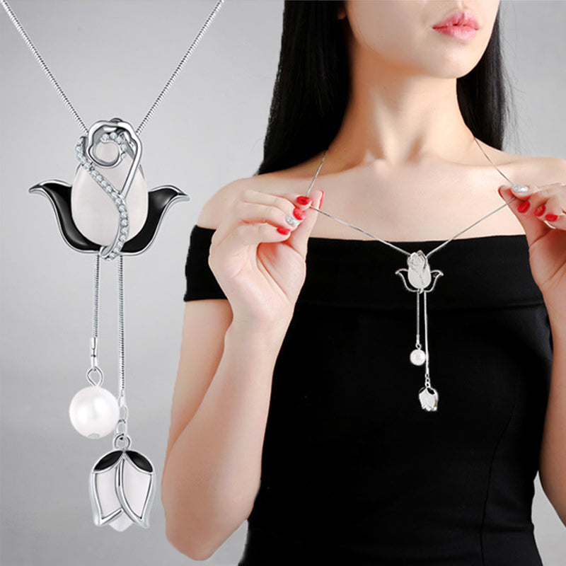 🌷✨【Продаван хит】Дълго елегантно колие с котешко око и форма на лале, с индивидуален дизайн