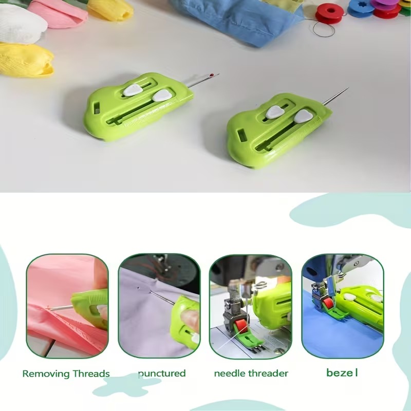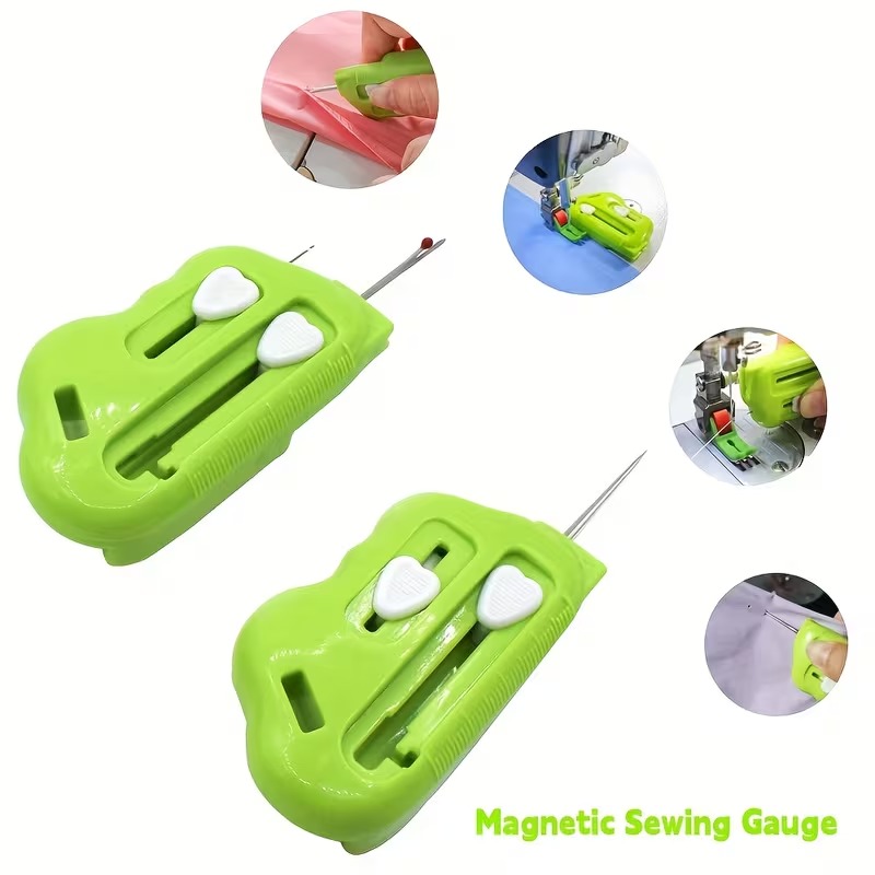 Magnetické pravítko na prošívání 3 v 1 s otvírákem švů a navlékačem nitě | Silná magnetická kontrola okrajů, značky na pravítku (lze použít na domácích i průmyslových šicích strojích)