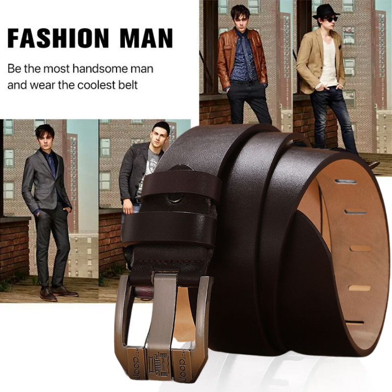 Vrhunski retro moški pas, jeans pas z zaponko iz pravega usnja, preprosta in modna zaponka, izbrano enoslojno goveje usnje, čvrsto in vzdržljivo